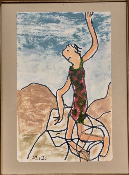 werde unten erwartet. 2020. Tusche u. Ölfarbe auf Papier,